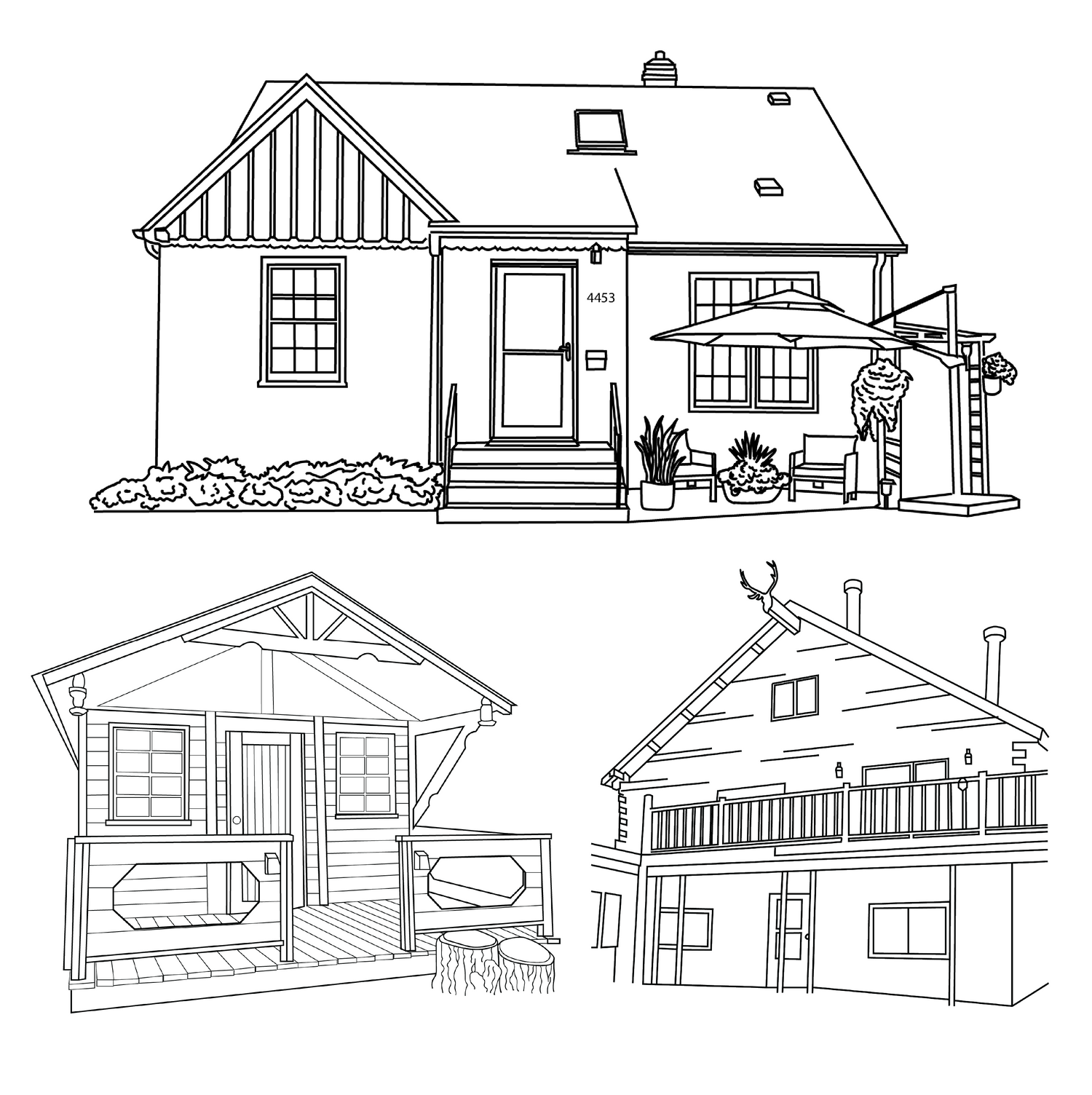 Including, but not limited to: houses, restaurants, cabins, venues, buildings, etc.