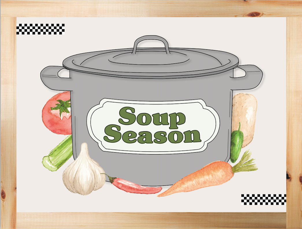 Apparel design for fall line. "Soup Season" is a combination of original watercolors, digital illustration, and photography.